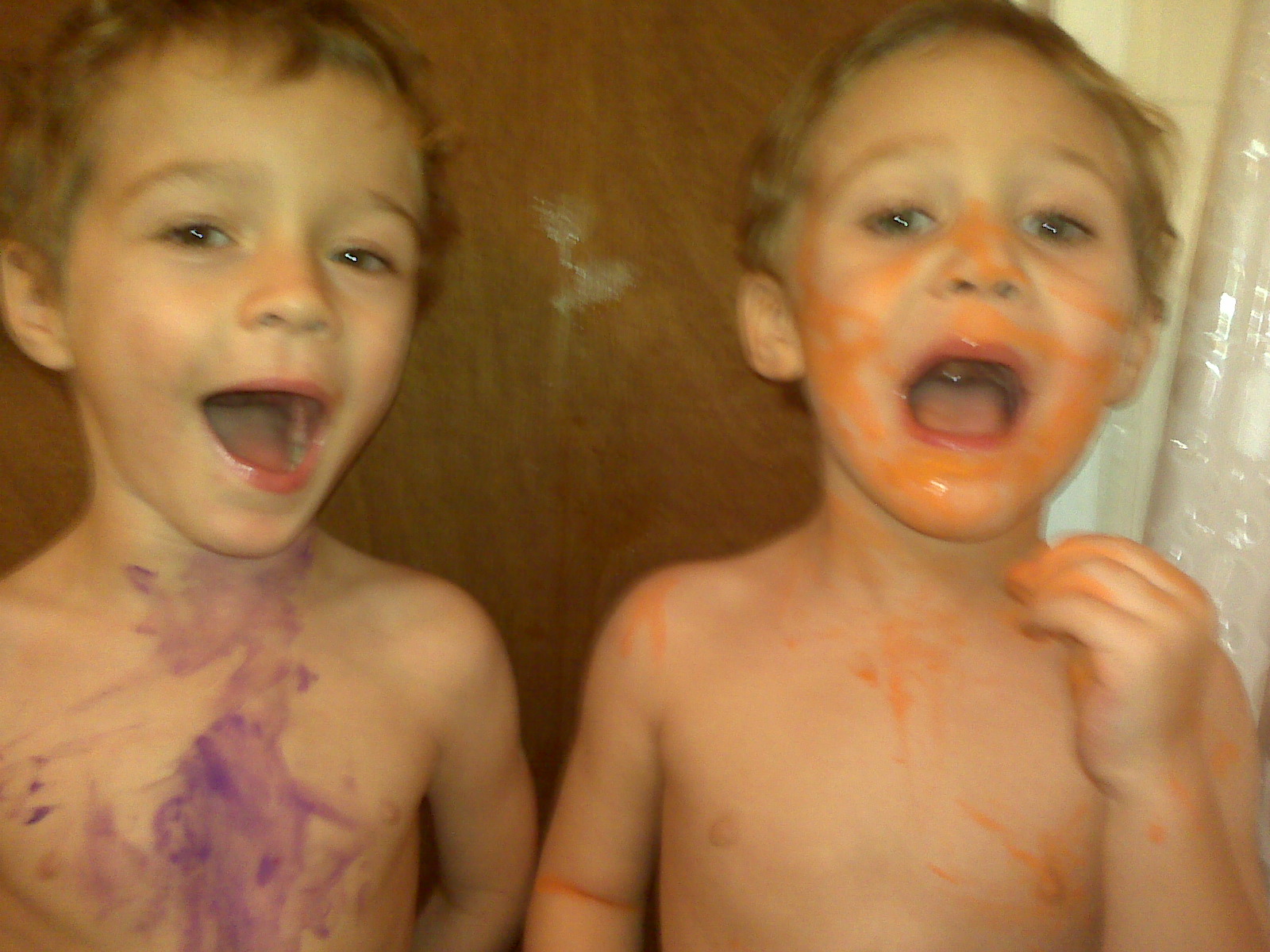 After telling you both 900 times not to touch anything, this, that, or the other (especially the urinal), I instead promised to remind you when you are all grown up that you are lucky to have survived that particular weekend due to the amount of gross and disgusting germs that you must have picked up in the 2-minutes we were in the orange castle. It's incredibly barfy for me to even think about this, and I'm NOT a germaphobe (at least not yet).